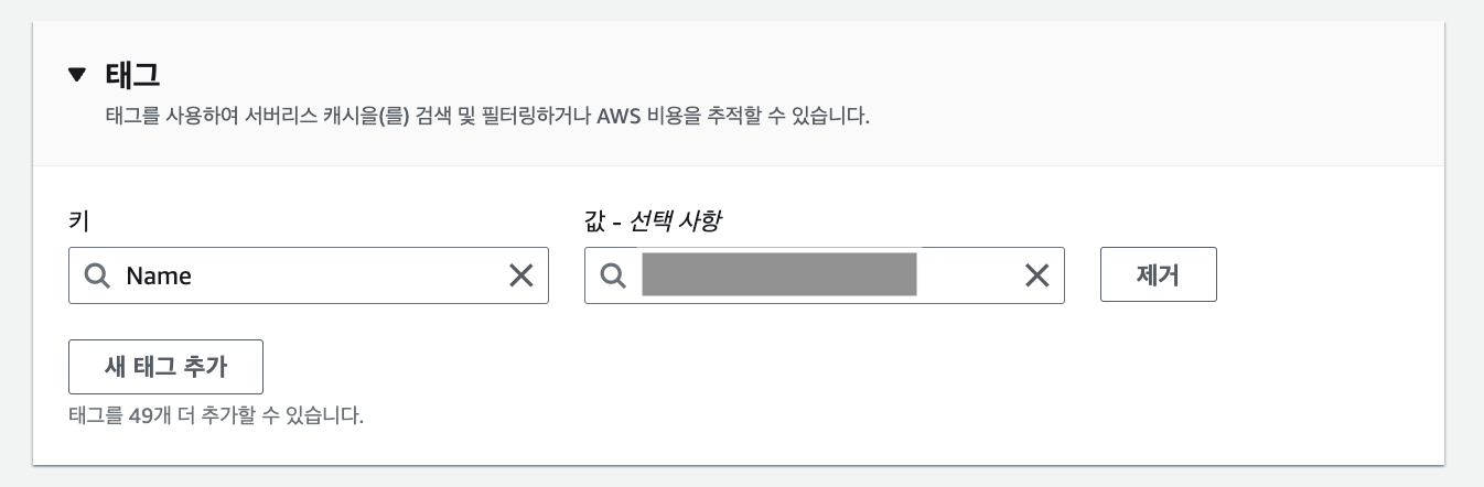7. 마지막의 태그에는 편의를 위해 Name 키를 설정하고 [생성] 버튼을 눌러줍니다.