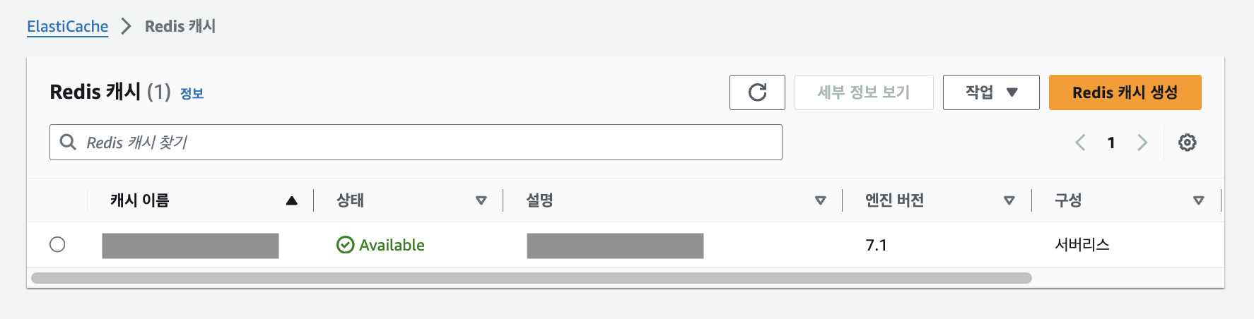 1. AWS 접속 후 ElastiCache로 접속 -> [지금 시작] 버튼을 누르고 Redis를 선택합니다.